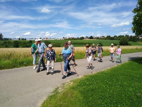 Etwas weiter weg ging es bei unserer Wanderung am Sonntag, 14.Juli 24. Wir trafen uns um 12:30 Uhr bei sonnigem Wetter, um nach Bierlingen zu fahren. Dieser Ort liegt auf einer Hochebene oberhalb des Neckartales im Landkreis Tübingen und war der Ausgangspunkt unserer etwa 7 km langen Tour.
